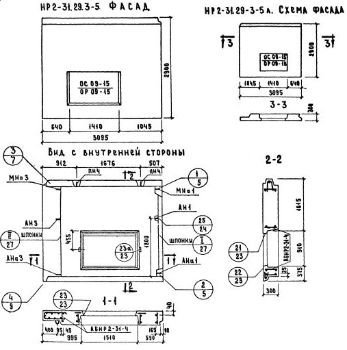 НР2-31.29.3-5   Наружная стеновая панель рядовая по Серии 1.132-1.