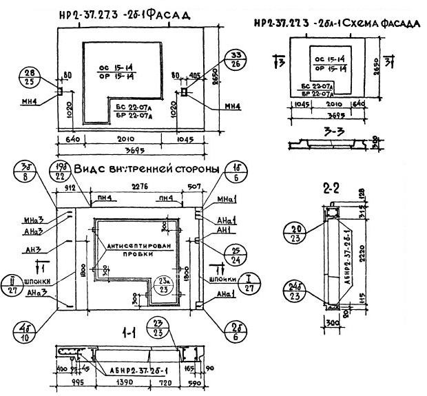 НР2-37.27.3-2б-1 Наружная стеновая панель рядовая по Серии 1.132-1.