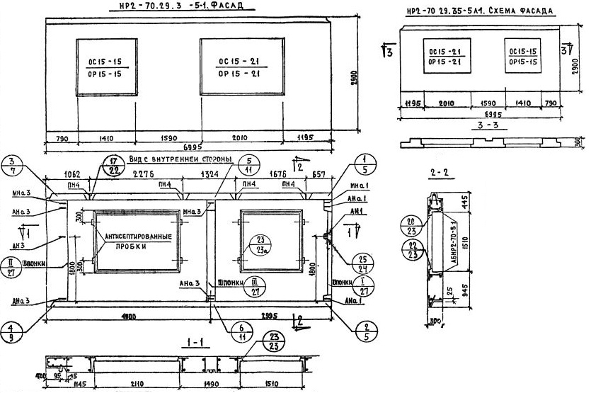 НР2-70.29.3-5-1 Наружная стеновая панель рядовая по Серии 1.132-1.